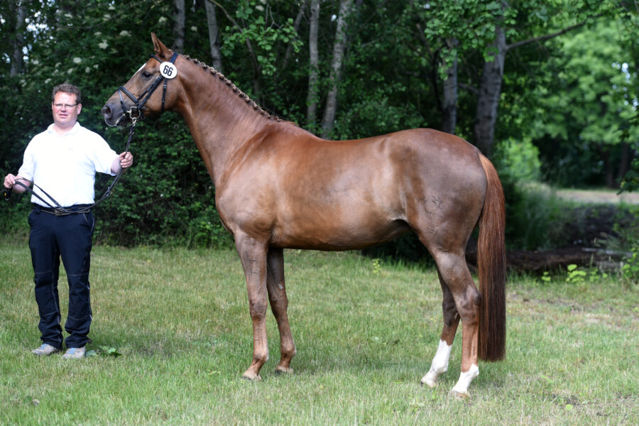 • Tres Chic von Schwarzgold u. d. StPruPrSt Tacyra von Saint Cyr (Z. Gestüt Hämelschenburg, B. Matthias Blum), 54 Punkte, Prämienanwartschaft